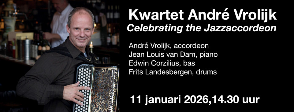 André Vrolijk studeerde af aan het Sweelinck conservatorium Amsterdam in 1993 waarna hij zich ontwikkelde tot een veelgevraagde accordeonist die alle facetten en stijlen beheerst, van Jazz via Tango naar Musette en alles wat daar tussen in zit. Hij heeft in veel bekende orkesten gespeeld zoals Metropole orkest, Malando en Jazz ensembles met Jean Louis van Dam, Edwin Corzilius en Frits Landesbergen die deze middag van zich laten horen. Het wordt een muzikale, swingende reis rond de wereld.